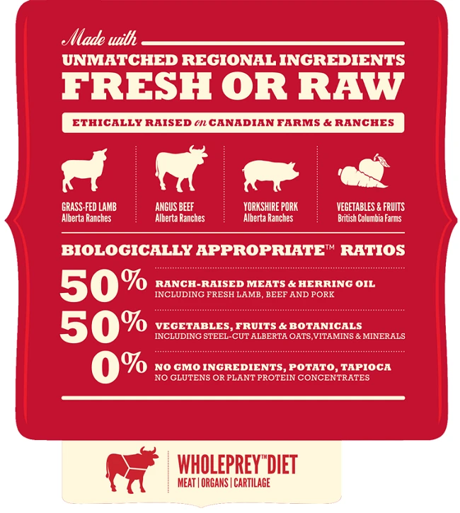 C’est pourquoi Acana Classic Red contient de l’agneau nourri avec de l’herbe, du bĹ“uf Angus, et du porc, livrĂ©s frais ou crus tous les jours dans des proportions WholePrey, afin de pleinement nourrir votre chien.Â