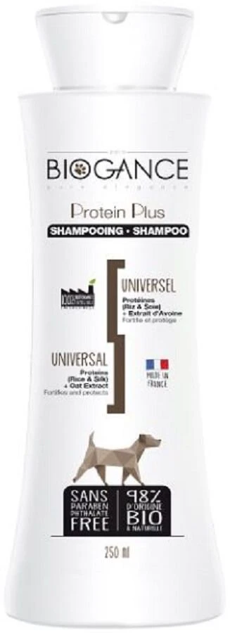 Le shampooing ProĂ©tine Plus est un shampoing universel pour chiens. Il est composĂ© de lait d’Avoine, de protĂ©ines de Soie et de Riz. Ces ingrĂ©dients, Ă 98% d’origine naturelle et Bio, vont venir nettoyer tout en douceur le pelage, faire briller le poil, faciliter le dĂ©mĂŞlage mais aussi venir tonifier. C’est un produit fabriquĂ© en France, sans paraben et au pH neutre.Â