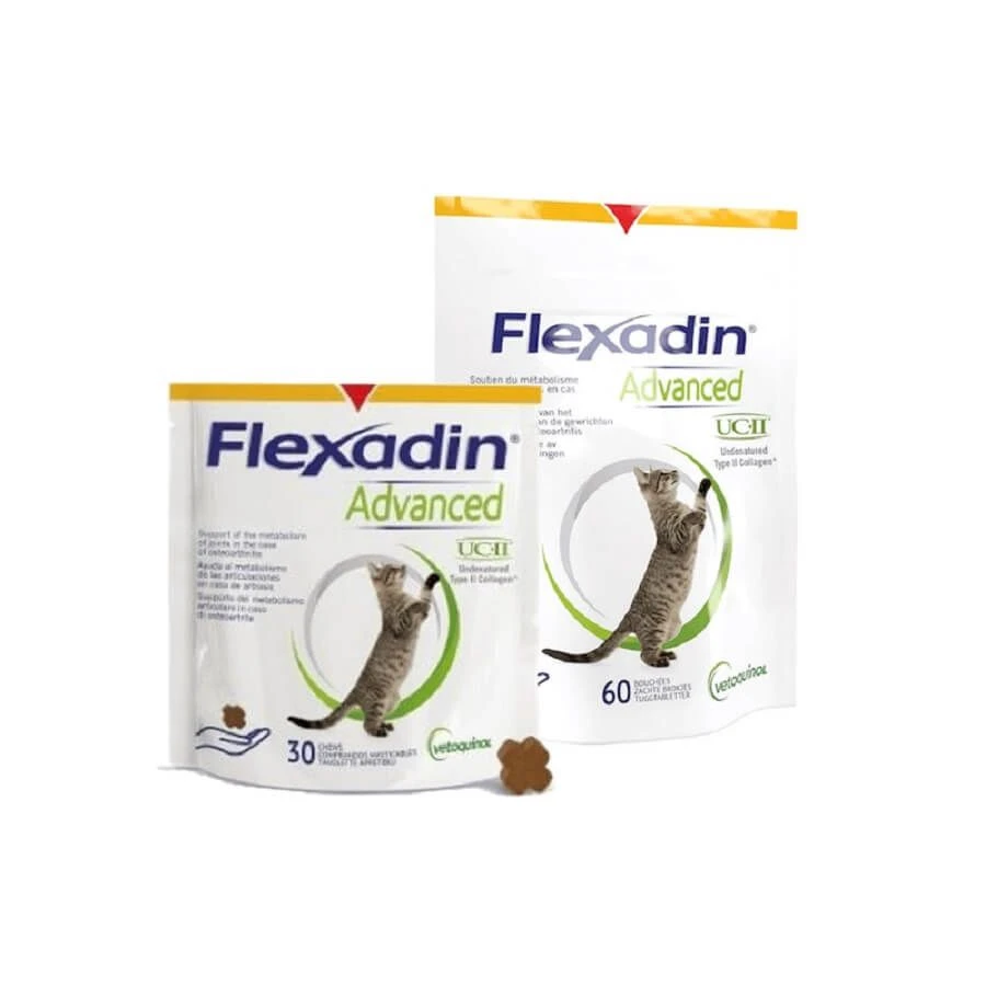 Flexadin Advanced est un complĂ©ment alimentaire pour soutenir les articulations du chat, il est conseillĂ© pour les chats seniors ou pour les chats ayant des problèmes d’arthrose afin de prĂ©server et soutenir leurs articulations. Ce complĂ©ment Ă base d’UC-II ® (collagène de type II non dĂ©naturĂ©) permet le soutien du mĂ©tabolisme des articulations en cas d’ostĂ©oarthrose.