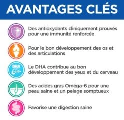 - Avec des acides gras oméga-6 pour une peau saine et un pelage somptueux