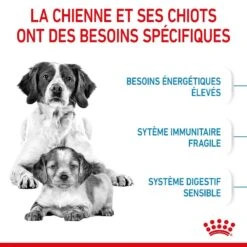 - Répond aux besoins énergétiques élevés des chiennes en gestation ou lactation