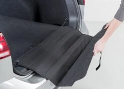 Il est Ă©quipĂ© de bandes Ă©lastiques ainsi que de mousquetons pour se fixer facilement aux crochets au sol du coffre de voiture.Â